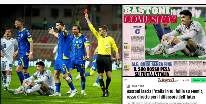 赛后,意大利媒体普遍对巴斯托尼的表现进行了严厉批评。《米兰体育报》以“巴斯托尼,以及一个灾难性的2026年”为标题点评其表现,并在纸媒版面中同样指出其发挥不佳;《都灵体育报》将其列为出局的主要责任人之一;《罗马体育报》则直言其这次红牌“愚蠢”。甚至有媒体制作合成图,将其身披波黑球衣,以此表达不满。