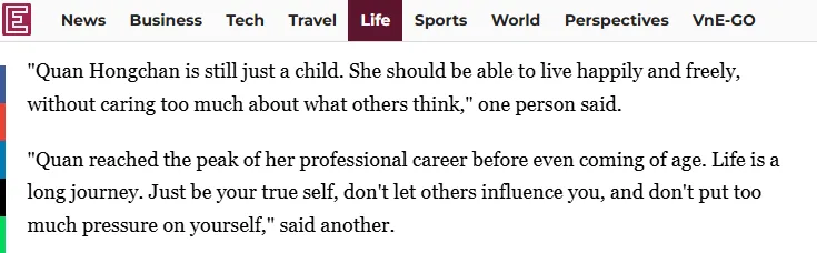 越南权威新闻网站VnExpress也援引网友评论发声